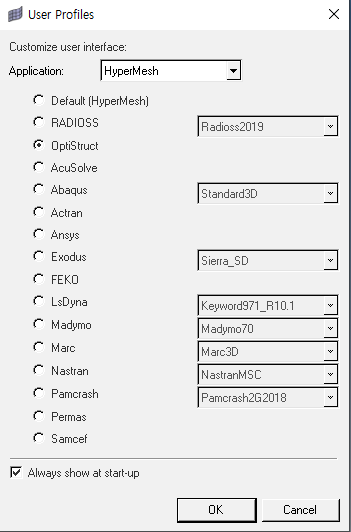 After running, select OptiStruct in the user profiles