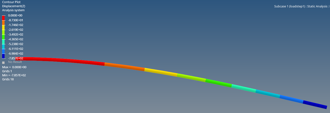 The maximum displacement(z) is 785mm
