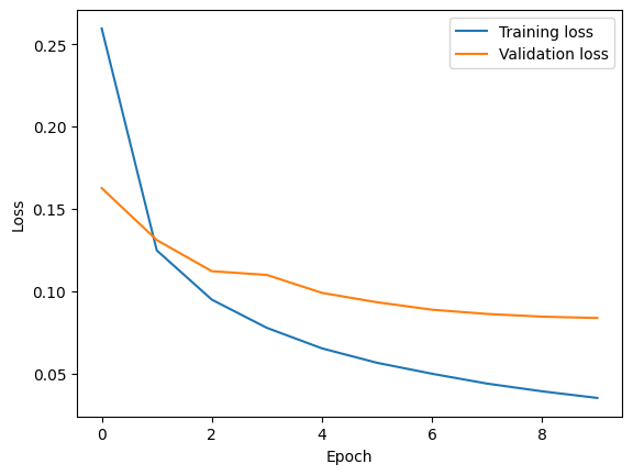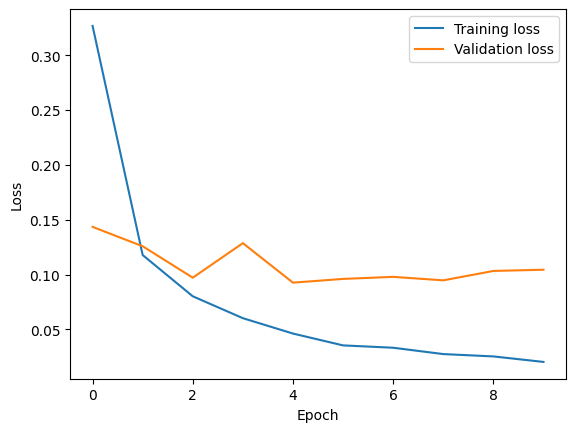 As with the previous code, training is conducted for 10 epochs, and progress is monitored using tqdm. At the end of each epoch, the training loss and validation loss are printed.