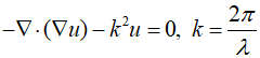 The wave equation, when transformed into the Helmholtz equation, is as follows.