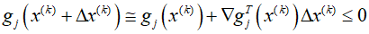 Every search method starts with an initial estimate of the design and iteratively improves it. In the $k$th iteration, if we denote the design estimate as ${x^{(k)}}$ and the change in design as $\Delta {x^{(k)}}$, a linearized subproblem can be obtained through the quadratic Tayor expansion of cost and constraint functions at the point ${x^{(k)}}$.