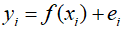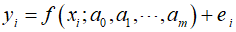 Where ${y_i}$ represents the measured values of the dependent variable, $f({x_i};{a_m})$ is a nonlinear function of the independent variable ${x_i}$ and parameters ${a_0},{a_1}, \cdots {a_m}$ and ${e_i}$ is the random error. For simplicity, the model can be abbreviated by omitting parameters, expressed in a condensed form.