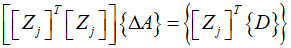 Therefore, solve for $\Delta A$ from the above equation to calculate the improved values of the parameters.