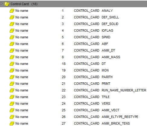 There are a total of 18 control cards used in this example. Let's take a look at them one by one