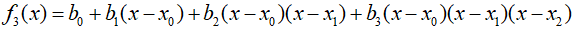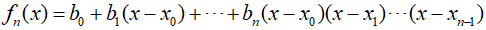 As with linear and quadratic interpolation, data points can be used to calculate the coefficients ${b_0},{b_1}, \cdots ,{b_n}$, and for an $n$th degree polynomial, $n+1$ data points are required. These data points can be used to calculated the coefficients through the equation below.