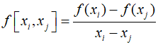 Here, the function inside the brackets represents the finite divided differences. For example, the first finite difference is typically expressed as follows.