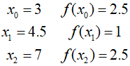 These three equations can be used to calculate values within each interval. For example, the value at $x=5$, which lies in the second interval, can be calculated as follows.