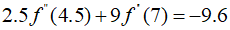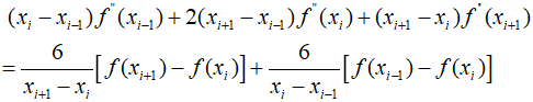 In this post, I'll solve the same example as in the previous post using the cubic spline process derived in the last posting. The first step is to generate a set of simultaneous equations to determine the second derivatives at the nodes. For example, the following data is used for the first internal node.