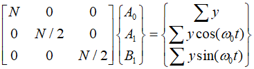 These equations can be used to determine the unknown coefficients. Additionally, in the special case where $N$ observations form equally spaced intervals of length $T = (N - 1)\Delta t$ between them, the mean values can be determined as follows.