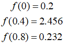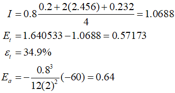 Lets estimate the error using the trapezoidal rule with two intervals when $a$ is $0$ and $b$ is $0.8$. The correct integral value is $1.640533$. When $n=2$.