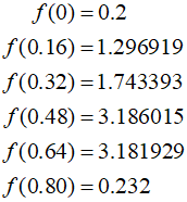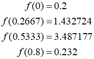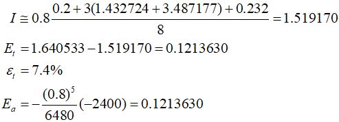 For the interval from $a=0$ to $b=0.8$, initially use only Simpson's $3/8$ rule, dividing it into four equal segments for calculation.