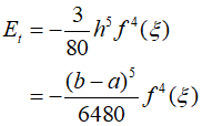 Therefore, the two internal points are assigned a weight of $3/8$, and the endpoints are given a weight of $1/8$. Consequently, the error in Simpson's $3/8$ rule can be expressed as follows.