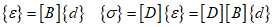 Strains and stresses are related to nodal displacements and strains as follows.