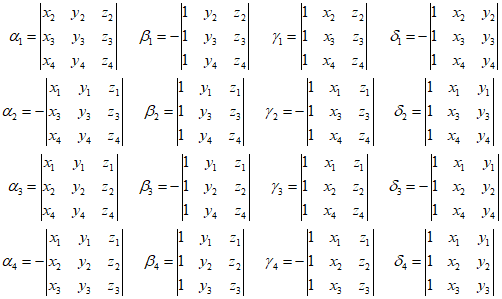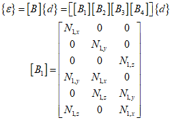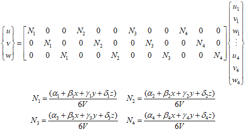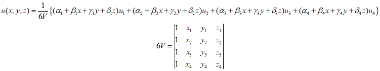Numbering each of the four nodes of the tetrahedron, the displacement at each node can be represented as follows.
