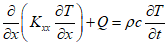 Summarizing the equations so far, the following one-dimensional heat transfer equation can be obtained.