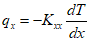 Where, ${K_{xx}}$ represents the thermal conductivity in the $x$-direction, $T$ is temperature, and $dt/dx$ is the temperature gradient in the $x$-direction.