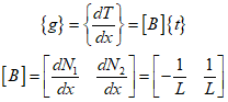 The temperature gradient matrix $g$ and the strain matrix $\varepsilon $ are as follows, and $B$ can be obtained by differentiating with respect to $x$.