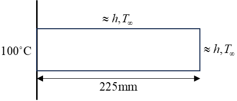 In the figure above, the temperature at the left end is fixed at ${100^{\text{o}}}{\text{C}}$, ${K_{xx}} = 60{\text{W/(m}}{{\text{ - }}^{\text{o}}}{\text{C)}}$, radius is $50mm$, $h = 800{\text{W/(m}}{{\text{ - }}^{\text{o}}}{\text{C)}}$, and ${T_\infty } = {10^{\text{o}}}{\text{C}}$.