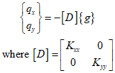 The relationship between heat flux/temperature gradient and the material property matrix $D$ can be represented as follows.