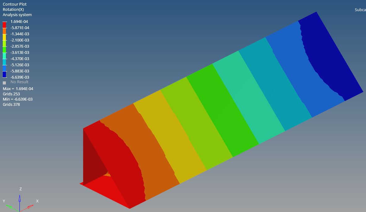 In this example, compare the torsional stiffness and rotation angle of a shell element with node sharing versus spot welding.
