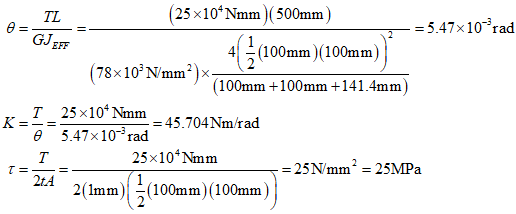 where $T$ is the torsional moment, $G$ is the shear modulus, ${J_{EFF}}$ is the polar moment of inertia, $\tau $ is the shear stress.