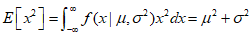 In the Gaussian distribution, the expected values of functions of $x$ can be easily calculated, and the mean value of $x$ is as follows.