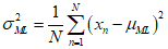 The above equation is measured as the sample variance about the sample mean. In the case of the Gaussian distribution, since the solution for $\mu$ is separate from that for ${\sigma ^2}$, the results should be used sequentially.