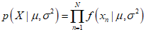 When the observations $x$ are independent and identically distributed, given $\mu$ and ${\sigma ^2}$, the probability of the dataset can be expressed as follows.