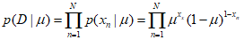 Given a dataset $D = \left\{ {{x_1}, \cdots ,{x_n}} \right\}$ consisting of observed values of $x$, assuming that the observations are independently drawn from $p(x|\mu )$, the likelihood function can be constructed as follows.