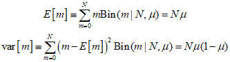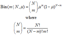 When the size of the dataset is $N$, the binomial distribution for the number of observations of $x=1$, denoted as $m$, can be calculated. To normalize, the binomial distribution where geads, i.e., $x=1$, occures $m$ times in $N$ coin clips can be expressed as follows.