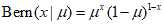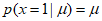 To give an example with coin flipping, $x=1$ represents heads and $x=0$ represents tails. The probability of getting heads when flipping the coin, that is, the probability of $x=1$, can be denoted by the paramter $\mu$ and expressed as follows.
