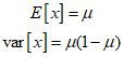 This is known as the Bernoulli distribution, and the normalized mean and variance are as follows.