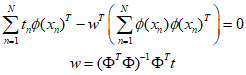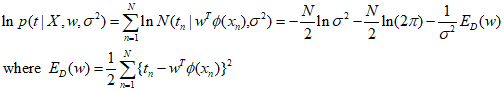 The bias value ${w_0}$ reduces the difference between the target values and the basis function. Additionally, the log likelihood function for the variance ${\sigma^2}$ can be maximized as follows.