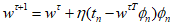 When applying a sequential algorithm, upon presenting data point $n$, the parameter vector $w$ is updated as follows.