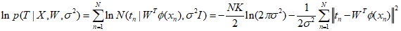 Where $y$ is a $K$-dimensioanl column vector, $W$ is a parameter matrix of size ${M \times K}$, and $\phi (x)$ is an $M$-dimensional column vector with elements ${\phi _j}(x)$, where ${\phi _0}(x) = 1$. This represents a single-layer neural network, and the conditional distribution can be assumed to be isotropic Gaussian.