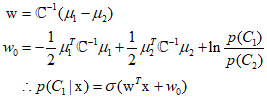 Now lets look at the form of the posterior probability when the class-conditional densities are assumed to be Gaussian. The density for class ${C_k}$ is as follows.