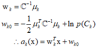 Where ${\Bbb C}$ is the converiance matrix, and it is assumed that all classes share the same converiance matrix.