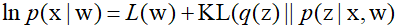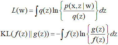 Here, $L$ represents the evidence lower bound, also known as the variational lower bound. Furthermore, the Kullback-Leibler divergence between two probability density functions $f({\text{z}})$ and $g({\text{z}})$ is denoted as ${\text{KL}}(f||g)$, and the respectives equations are as follows.