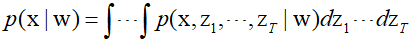 The above euqation is an example of a general latent variable model where the latent variables are composed of ${\text{z}}$ and the observed variables are ${\text{x}}$. The latent variables all have the same dimensions as the data space, which is different from the case with Generative Adversarial Networks.