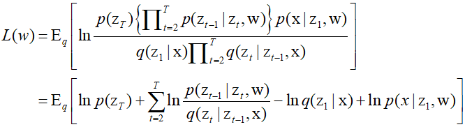 When the exact likelihood is difficult to resolve, a method similar to that used by Variational Autoencoders can be adopted to maximize the lower bound of the log likelihood. This is called the Evidence Lower Bound(ELBO), and when any arbitrary $q({\text{z}})$ distribution is chosen, the following relationship holds.