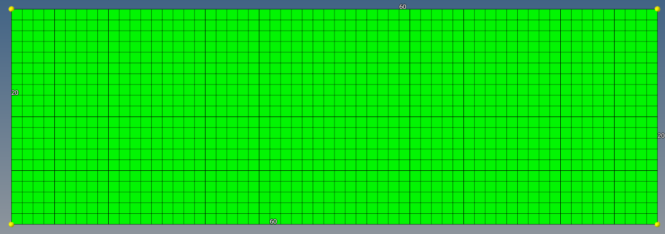 After launching Hypermesh, create nodes at coordinates (0,0,0), (60,0,0), (60,20,0), and (0,20,0), respectively, and connect these to form a closed curve to create the design domain for the MBB-beam.