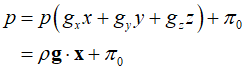 Where ${\pi _0}$ is determined through appropriate boundary conditions. In the equation above, by expressing the terms inside the parentheses as the dot product of the gravity vector and the position vector, and mocing the last term to the left side, the pressure distribution for an ideal gas with uniform temperature can be succinctly represented.