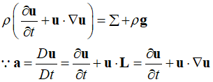 Using the point particle accerlation ${\bf{a}}$ and the hydrodynamic volume force $\sum \equiv \nabla \cdot {\bf{\sigma }}$ in the Cauchy momentum equation simplifies it as follows.